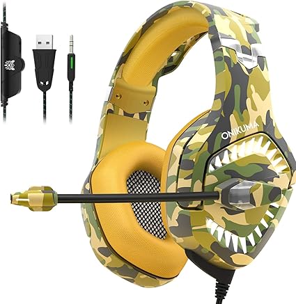 Amazon Com Onikuma Stereo Gaming Headset For Ps4 Xbox One Headset With 7 1 Surround Sound Noise Canceling Mic Soft Memory Foam Ear Pads Led Light Over Ear Headphones For Pc Laptop Mac Yellow Camouflage